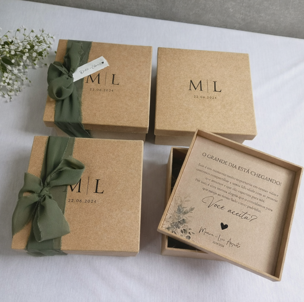 Essa caixa é ideal para as noivas que querem a experiência de montar os convites dos padrinhos do casamento.